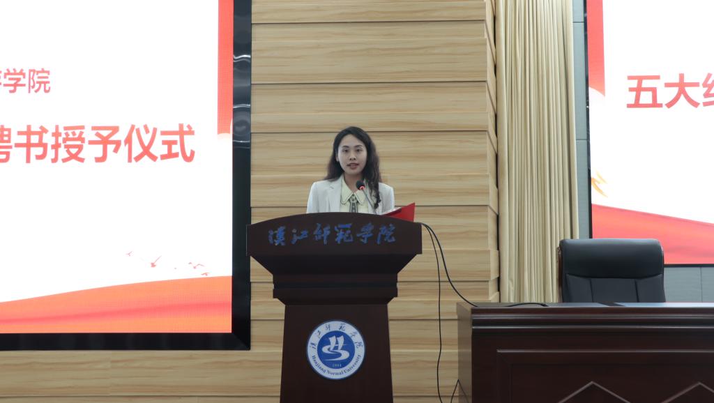 随后孙老师、龚老师上台为23级学生干部代表颁发聘书。当沉甸甸的聘书递交到学生干部手中时,每一份荣誉都承载着学院的肯定,每一个笑容都凝聚着过往的坚守,成为他们履职担当的生动见证。