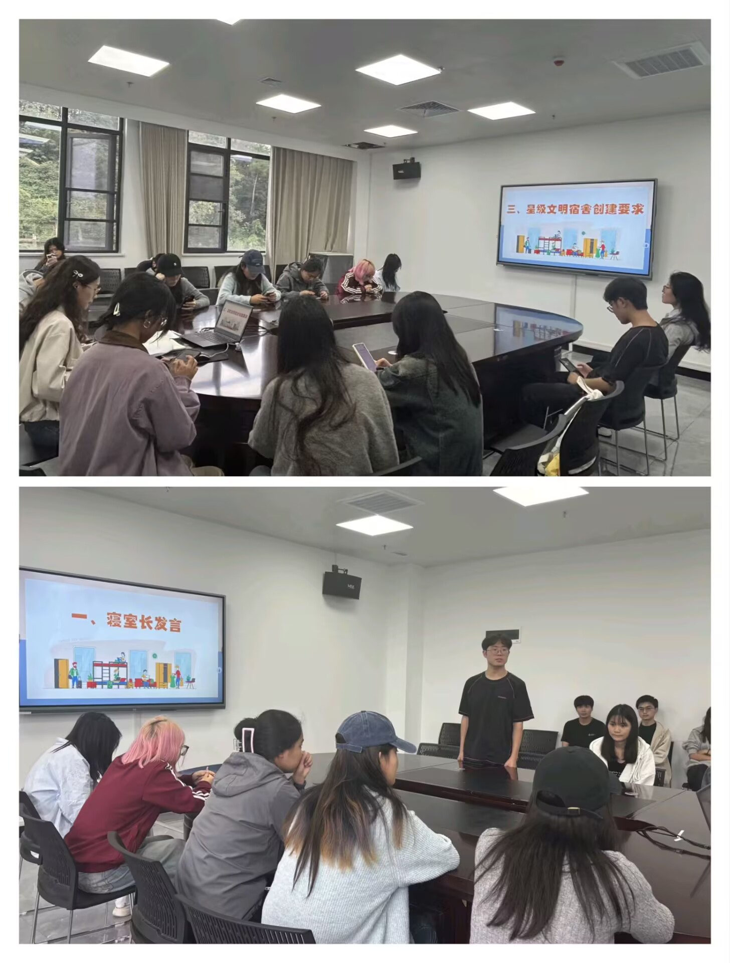 9月19日下午,学院在求真楼A813召开寝室长培训暨星级文明宿舍创建动员会。辅导员孙宇阳就寝室长职责、星级创建要求等内容进行系统讲解。会上,寝室长们交流了“卫生轮值表”等管理经验,孙老师进一步明确了创建标准、流程和激励机制,有效提升了寝室长的责任意识与服务能力。