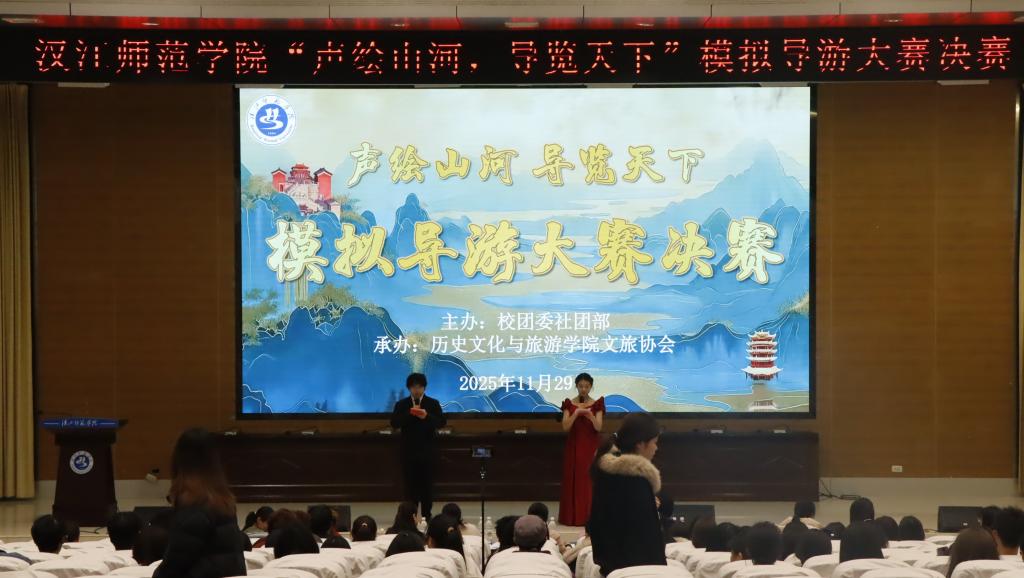 11月29日下午,888集团官网主校区图书馆学术报告厅内氛围热烈,由校团委社团部主办、888集团平台及文旅协会承办的“导览天下,声绘山河”模拟导游大赛决赛在此举行。赛事同步抖音直播,为文旅爱好者呈现了专业又具观赏性的视听盛宴。决赛评委团由吴小红、靳梦婷等5位旅游管理专业教师组成。