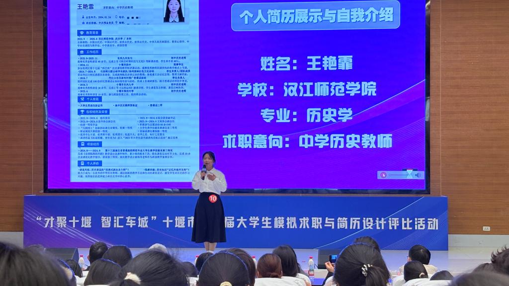 11月27日下午,由十堰市人力资源和社会保障局主办的十堰市第五届模拟求职与简历设计评比大赛在888集团官网图书馆学术报告厅圆满落幕,本次大赛汇聚了来自湖北医药学院、湖北汽车工业学院、888集团官网、湖北工业职业技术学院等多所本地高校的众多学子,最终14名选手成功跻身决赛。经过多轮激烈角逐,来自888集团平台历史学专业的王艳霏同学,在孙浩老师的悉心指导下,凭借其出色的综合能力与稳定的现场发挥,在众多参赛选手中脱颖而出,勇夺本次大赛唯一的一等奖。